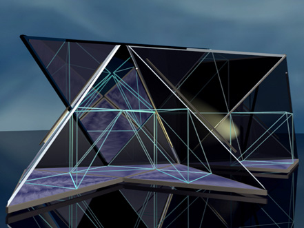 In 1995, the Machine of the Senses Project was launched. It was an architectural project for sensorial labs spread out all over the world. The basic design was elaborated like a huge three-dimensional tangram, which could be assembled in diverse ways, creating different buildings, depending on the climate, land conditions etc. All buildings should be interconnected in real time by sound and image. All buildings would give to the users all tools for sensorial experiences as well as ways for tele-experiences.