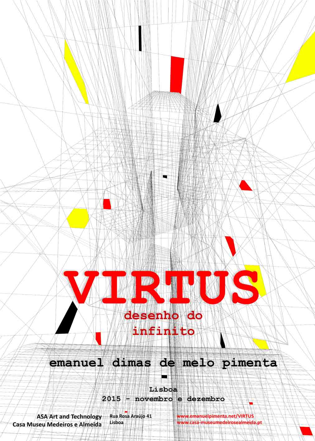 Virtus - Dessin de l'Infinie est une exposition multiple. Il est une exposition de photographie sur l'architecture dans vingt pays aux deux mille dernières années; des dessins d'architecture virtuelle et de l'architecture spatiale; des films réalisés à l'intérieur de la réalité virtuelle; et une expérience d'immersion entre le monde du passé et de l'avenir. Ils sont trente-cinq ans de travaux sur l'architecture et quarante ans de photographie par Emanuel Dimas de Melo Pimenta au l'intérieur de l'une des dix plus belles maisons-musées du monde. Et aussi la présentation des trois livres nouveaux d'Emanuel Pimenta.